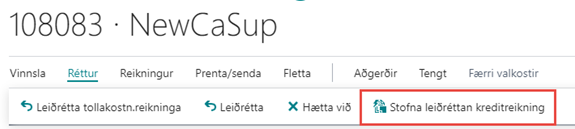 4. Í nýrri útgáfum er hægt að kafa ofaní bókaða reikninginn úr tollskýrslunni og fara í aðgerðina Stofna leiðréttan kreditreikning. Við það myndast kreditreikningur sem þarf að bóka handvirkt til að snúa við bókaða reikningnum.