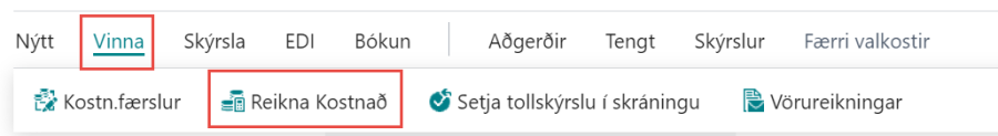 Til að framkvæma þá aðgerð er farið í Reikna kostnað.