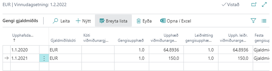 Upphæð viðmiðunargengis er þá ISK í okkar tilfelli ( 1€ = 150 kr.)