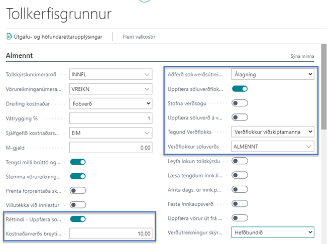 Stillingar fyrir vöruverðsútreikninginn eru í Tollkerfisgrunni