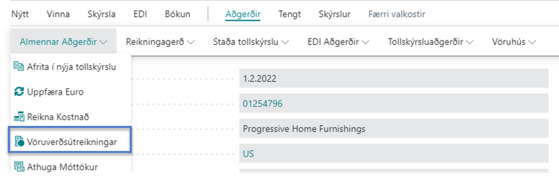 Velja þarf Vöruverðsútreikningar í flýtileiðaborðanum (á Aðgerðir flipa)