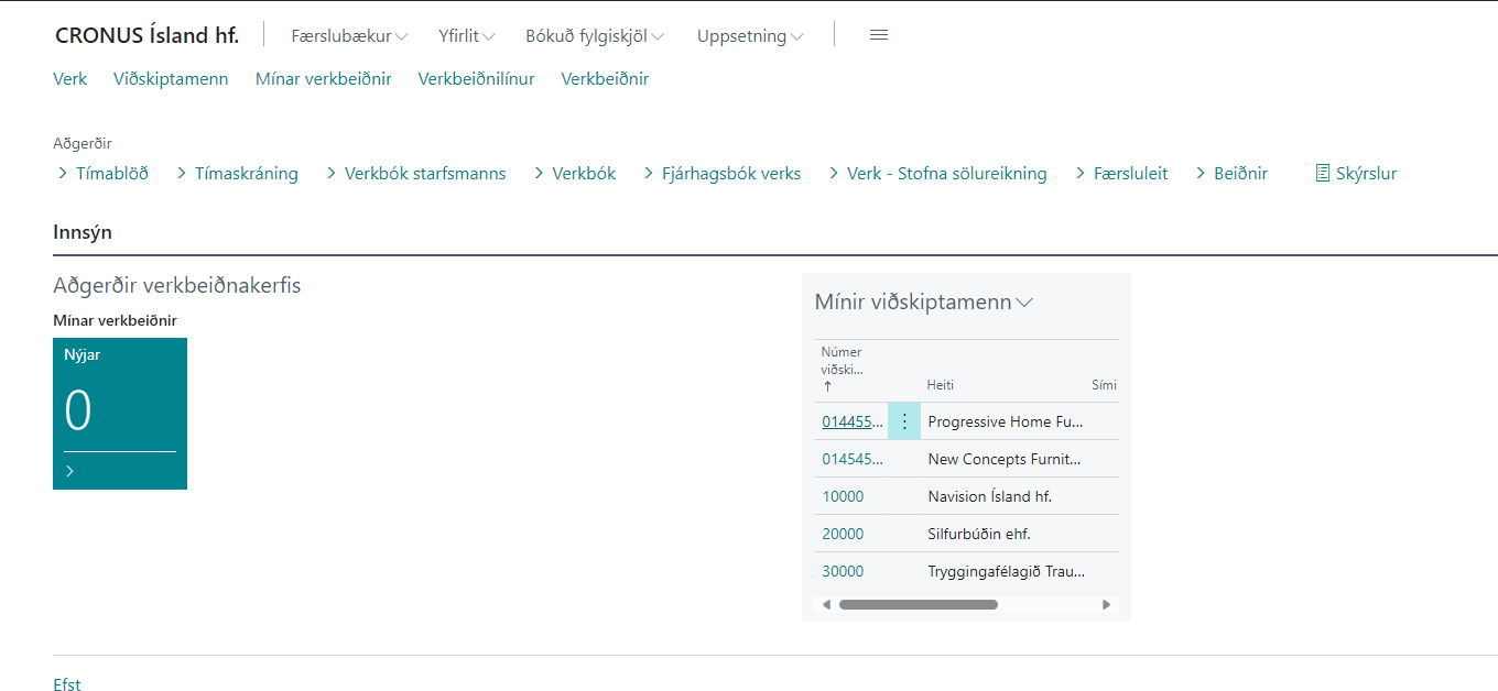 Skráning | Verkbeiðni og línur fá þessa stöðu þegar beiðnin er stofnuð |