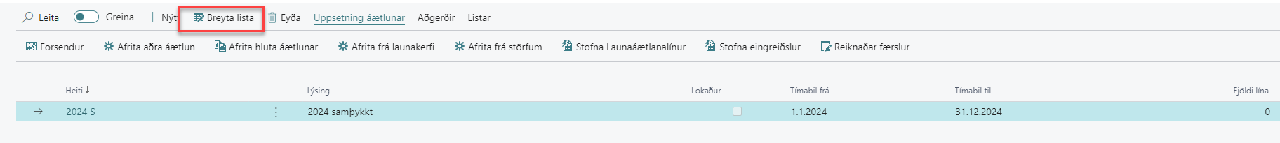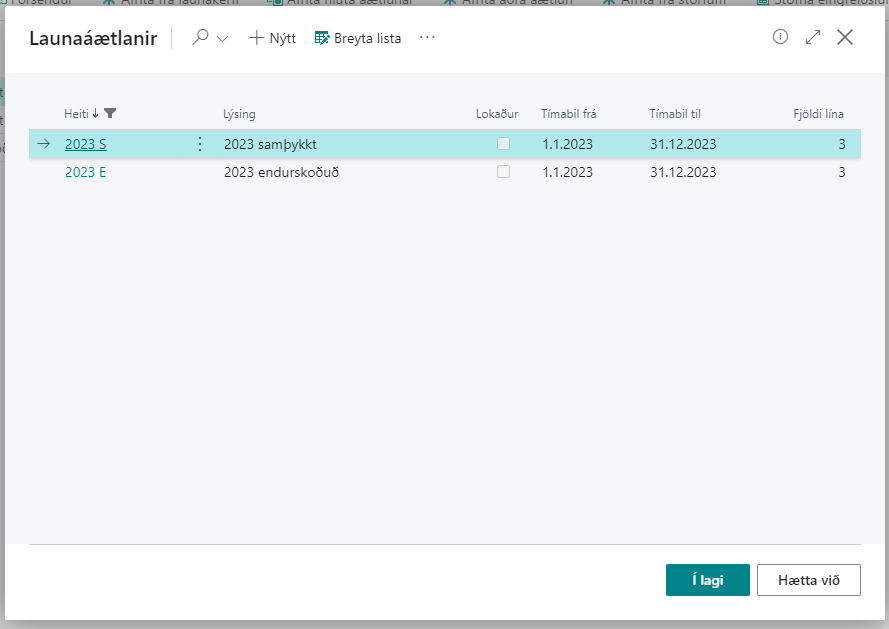 Nú ætti launaáætlunargrunnurinn að vera tilbúinn.