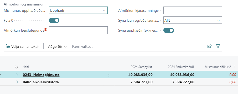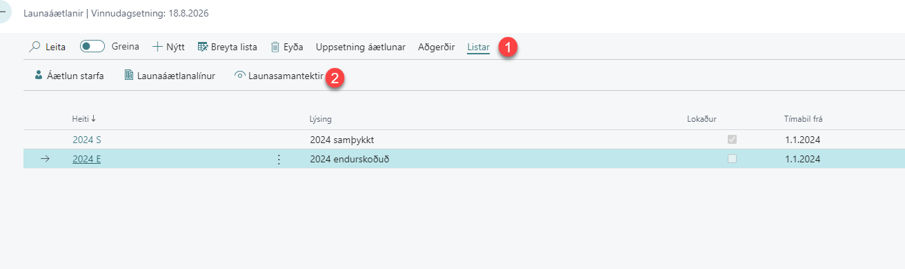 Áður en farið er að vinna í endurskoðaðri áætluninni, þá er gott að fara í launasamantektir og bera saman áætlanirnar, til að vera viss um að þær séu eins.