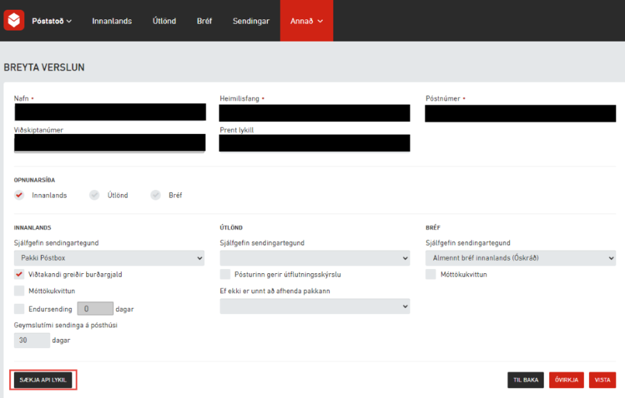 Leiðbeiningar frá Íslandspósti fyrir API lykil
