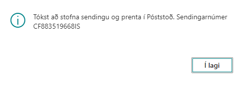 Þá sendir kerfið upplýsingar um sendinguna á Póststoð og skráist hún þar inn.