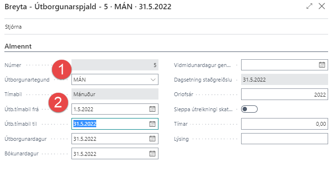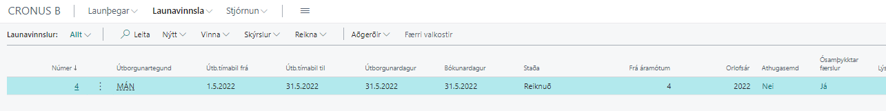 Annað birtist sjálfkrafa og athugið að færa ekki bókunardag þótt útborgunardagur sé færður til.