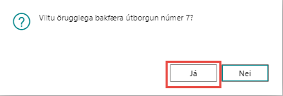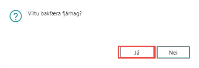 Kerfið spyr hvort þú viljir örugglega bakfæra útborgun, já eða nei. Þegar valið er Já, spyr kerfið hvort þú viljir bakfæra í fjárhag. Já, við viljum það í langflestum tilfellum.