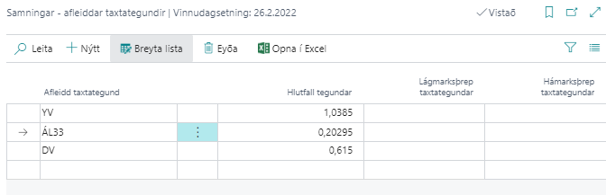 Einfaldast er að halda utan um kjarasamninga á þann hátt að skrá einungis mánaðarlaun eða dagvinnulaun og skrá alla aðra taxta sem hlutföll af þeim. Þá er valinn liðurinn Afleiddir launataxtar og skráð þar hvernig taxtar eiga að reiknast frá grunntaxtategund kjarasamnings. Hér er dæmi um það hvernig slíkt er sett upp af mánaðarlaunum. Athugið að þessar tölur gilda auðvitað ekki fyrir alla kjarasamninga og eru einungis til að sýna virknina.