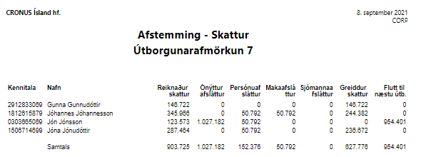 Hægt er að sjá hvernig persónuafsláttur er nýttur í einfaldri skýrslu. Jafnframt sést hér staða á nýtingu afsláttar.