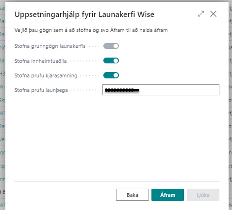 Sá notandi sem keyrir uppsetninguna er stofnaður sem stjórnandi í Launakerfi Wise.