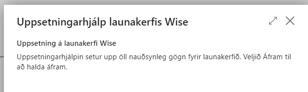 Sláið inn Uppsetningarhjálp í leitargluggann og veljið Uppsetningarhjálp Launakerfis Wise.