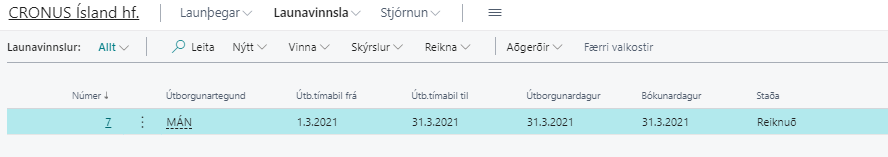 Stofna og reikna launaseðla: