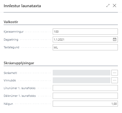 Skráning eða innlestur launataxta