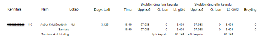 Ef það kemur fram breyting í þessari skýrslu þarf að keyra hana aftur, merkja við Færa og bóka síðan færslubókina sem myndast í fjárhag.