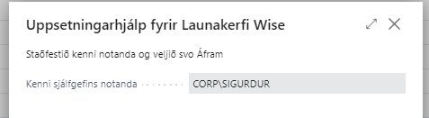 Veljið Uppsetning á Launakerfi Wise og fylgið leiðbeiningaraðstoðinni.