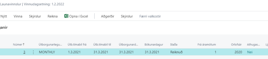 Færa inn Útborgunarnúmer eða Dagsetningu
