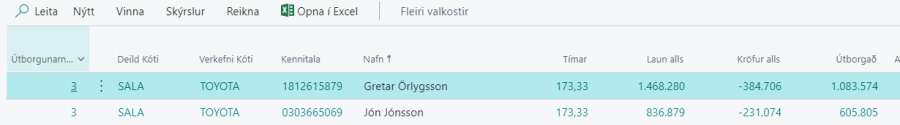 Þegar launabók og kröfubók hefur verið yfirfarin er hún staðfest yfir í rétta útborgun.