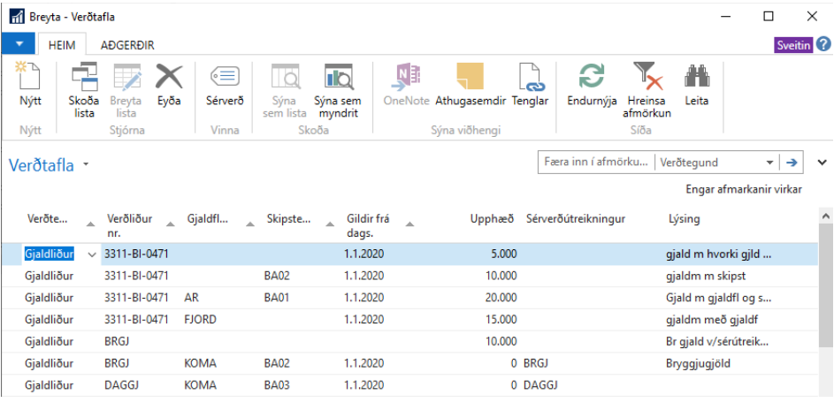 Verðtafla