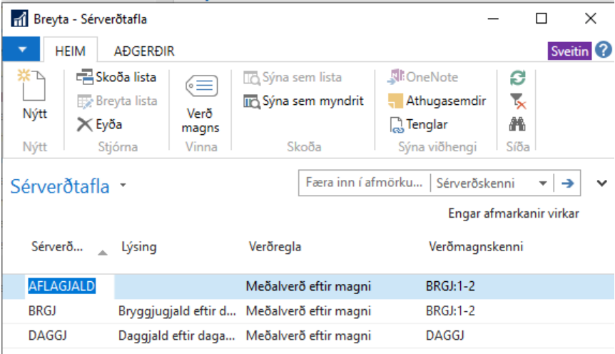 Sérverðtafla
