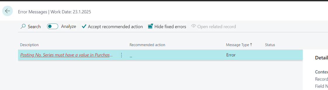 Áður fyrr gat villa komið vegna þess að Posting No Series/Númerasería fyrir bókaðan reikning var tómt í innkaupakreditreikninga þegar reikningar komu úr RSM. Þrátt fyrir að númeraseríur voru rétt settar uppí Business Central.