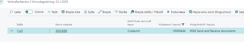 Það verður sjálfvirkt til verkröð núna í RSM. Enn áður þá þurfti að setja upp verkröðin í höndunum. Nú er einfaldlega hægt aðfara í Verkraðafærslur og velja Tilbúið þegar fyrirtæki eru tilbúin að fara senda