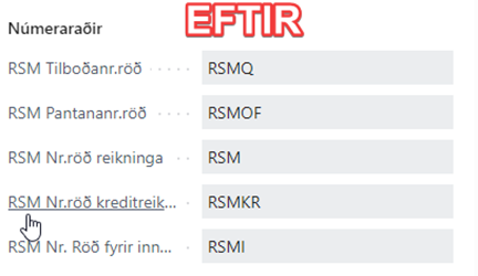 Áður fyrr urðu eingöngu til tvær númeraraðir RSM og RSM-I nú verða til allar númeraraðir. Þetta einfaldar viðskiptavinur uppsetningu á kerfinu þar sem allar skjalatýpur virka