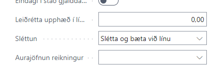 Áður fyrr var aurajöfnunar reikningur falinn á stillingarsíðu RSM, þegar viðskiptavinir notuðu Slétta og bæta við línu regluna var þess vegna erfitt að fá reikningin réttan inní Innkaup uða uppáskrift svo það þyrfti að gera sem minnsta vinnu við frágang á reikningi. Nú er hægt að velja Aurajöfnunar lykilinn og fá línuna beint rétta inní Innkaup / Uppáskrift.