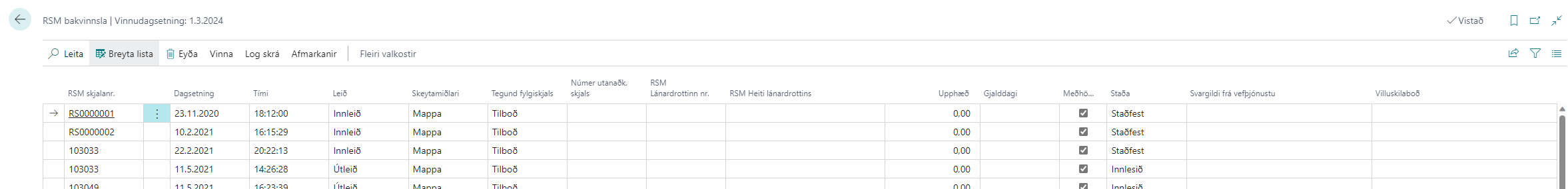 Bæði upplýsingar fyrir útsend skjöl og móttekin skjöl má finna í bakvinnslu.