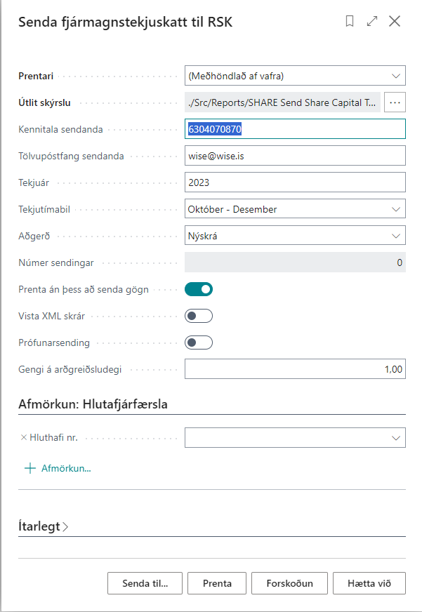 Senda Fjármagnstekjuskatt eða hlutafjármiða til RSK