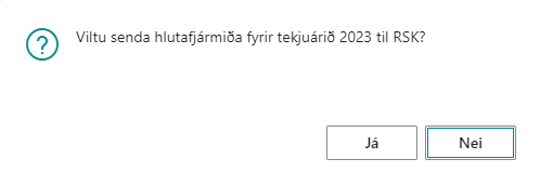 Hægt er að senda hlutafjármiða til RSK með einu handtaki. Það er gert með því að fara í Tímabilsaðgerðir > Senda hlutafjármiða til RSK. Viðvörun kemur upp sem býður upp á að hætt sé við aðgerðina.
