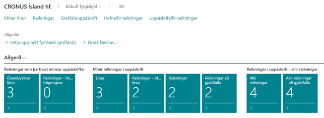 Reikningar – Hér birtist listi yfir alla reikninga sem eru ósamþykktir af notenda.