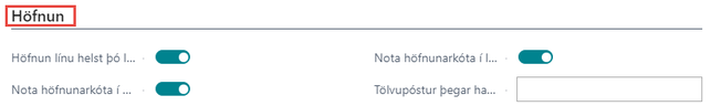 Nota höfnunarkóta í haus - Ef hakað er í þennan reit þá má hvorki hafna né bakfæra haus án þess að setja inn höfnunarkóta.