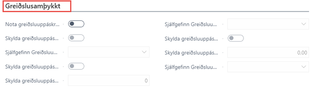 Nota greiðsluuppáskrift - Ef hakað er hér, þá þarf að skilgreina næstu reiti sem á eftir koma.
