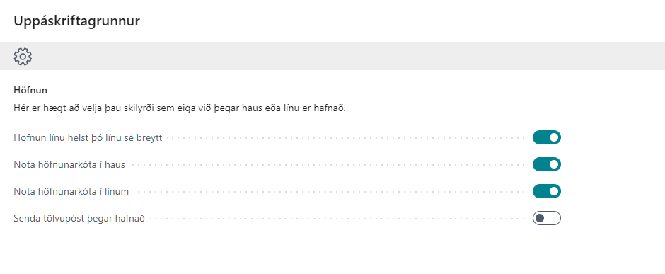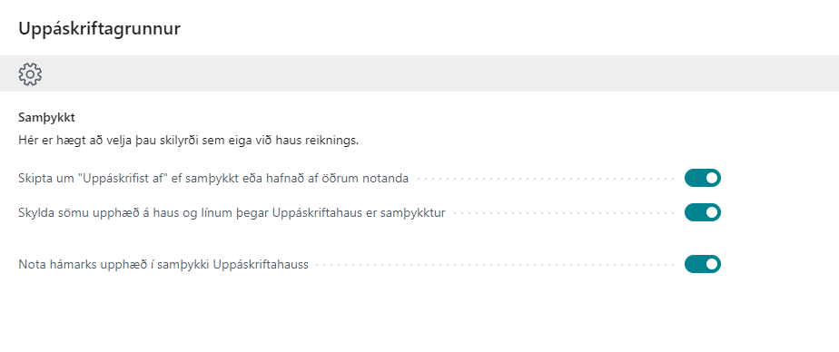 Til að byrja með þarf að setja Uppáskriftarkerfið upp í Business Central.