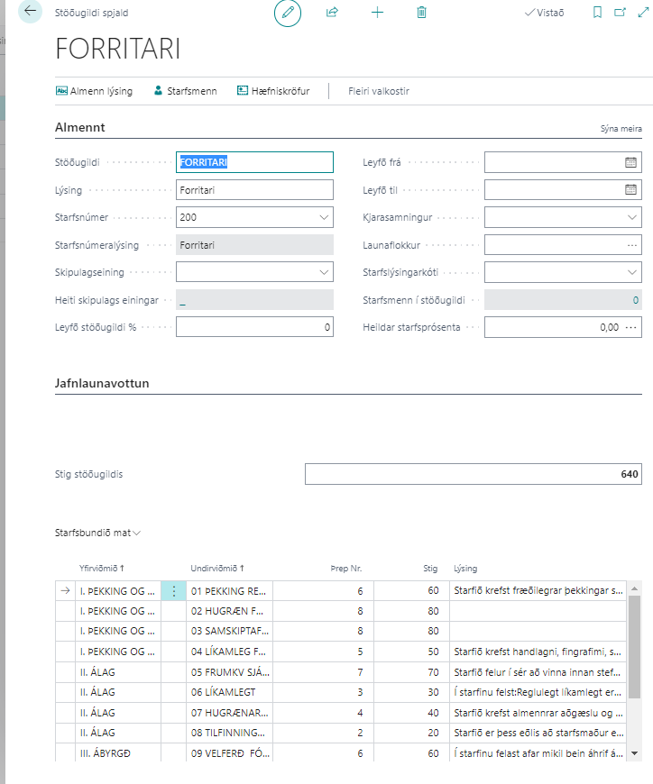 Á spjaldinu eru settar inn nánari upplýsingar um stöðugildið.