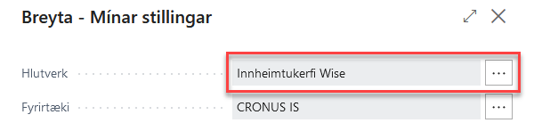 Fyrsta skref er að breyta hlutverkinu í Innheimtukerfi Wise en það er gert undir Mínar stillingar (Alt+T)