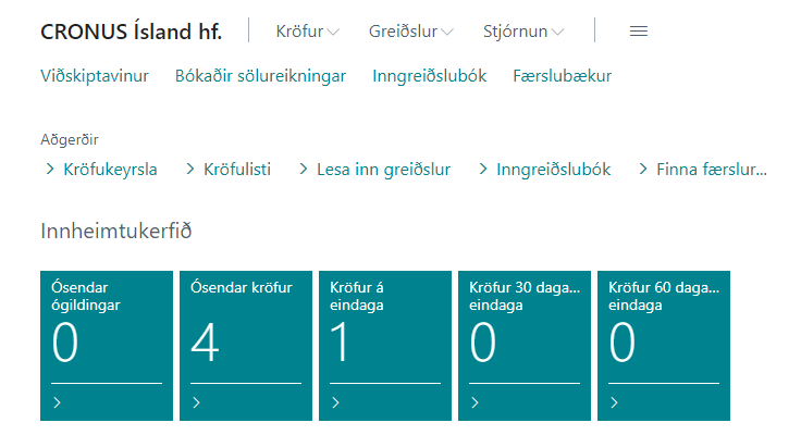 Í Hlutverk Innheimtukerfis eru allar aðgerðir kerfisins ásamt tengdum aðgerðum aðgengilegar á einum stað.