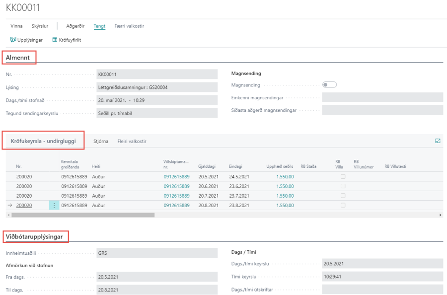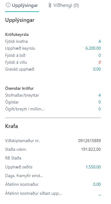 - Kröfukeyrsla - Upplýsingar og aðgerðir sem eiga við kröfukeyrsluna í heild.
