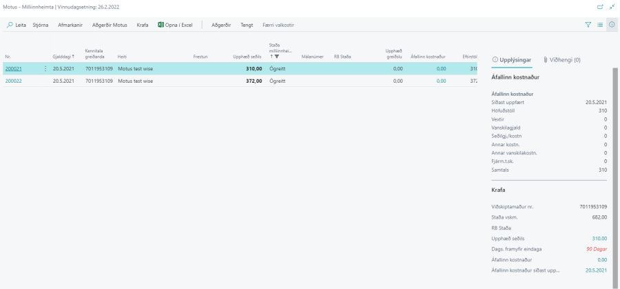 Opna vefsvæði Motus | Opnar vef Motus fyrir millinnheimtu með aðgangi notanda. |