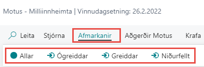 Sækja greiðslu | Þessi aðgerð er notuð þegar sækja á greiðslur til Motus. |