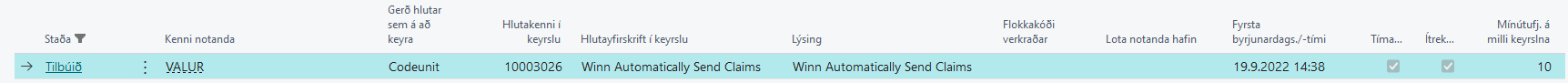 Annað: Gott er að hafa í huga hvernig sjálfvirkar kröfusendingar virka. Þegar krafa er mynduð og ef það er hakað við að senda sjálfvirkt, þá stofnar kerfið línu í töflu 10003034 – INN Automatic Process list. NAS keyrslan fer síðan í gegnum allar þær línur sem ekki hafa verið sendar í þessum lista og sendir í viðkomandi banka.