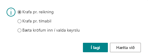 Þá kemur upp gluggi fyrir val um mismunandi aðferðir við stofnun kröfukeyrslu: