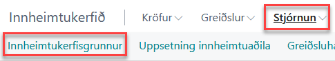 Fyrsta skrefið er að fara í Stjórnun og velja þar Innheimtukerfisgrunnur.