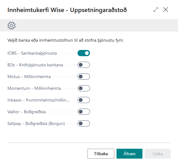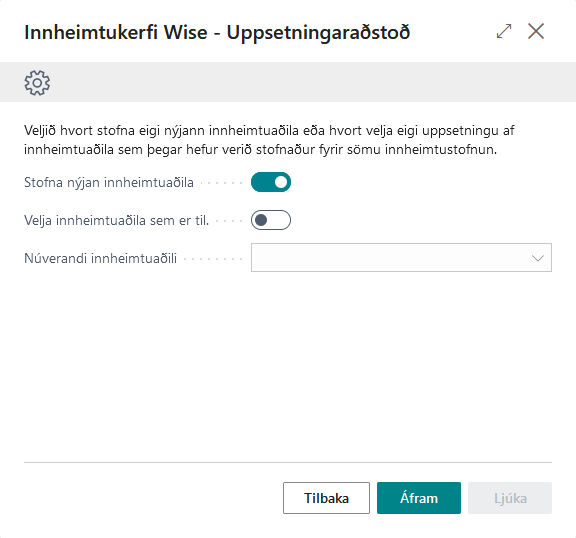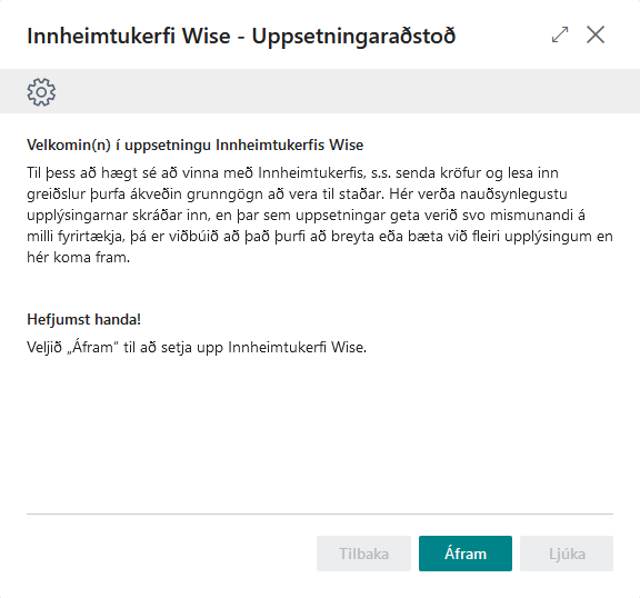 Sé ekki búið að setja upp innheimtukerfið er hægt að nota uppsetningaraðstoð til að einfalda uppsetninguna.