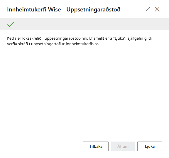 Þá er uppsetningunni lokið, smellt er á Ljúka svo uppsetningin sé vistuð og kláruð.