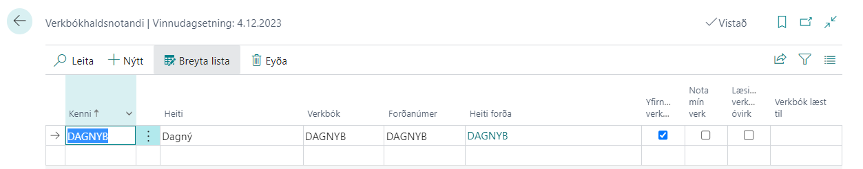 Verkbók - Verkbókarkeyrsla notandans.