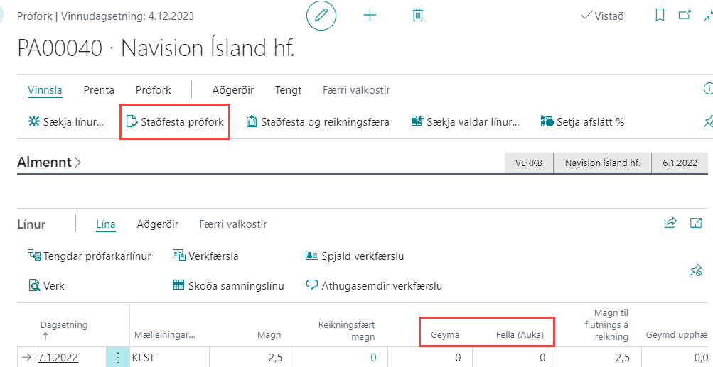 Þegar ábyrgðaraðili hefur yfirfarið próförkina getur hann Staðfest próförkina og fer hún þá úr opnar prófarkir og er tilbúin til reikningsfærslu.