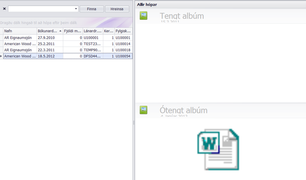 Sýna tómt myndasafn - Hægt er að velja að sýna tómt gallerí en þá er hægt, á fljótlegan hátt, að tengja myndir með því að draga myndir frá Ótengt albúm yfir í Tengt albúm.