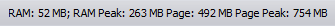 Ram Peak - Sýnir hversu mikið minni forritið sjálft hefur mest notað síðan það var ræst.